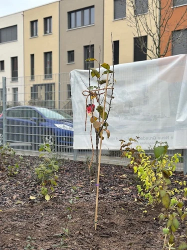 Zur Einweihung der Quellenschule hat die Schule einen Apfelbaum geschenkt bekommen. Dieser wurde am Mittwoch, 10.12.2025 in einer gemeinschaftlichen Aktion mit allen Schülerinnen und Schülern der Quellenschule eingepflanzt. Das gemeinsame Einpflanzen des Baumes symbolisiert, dass Schule gemeinsam gestaltet wird. Alle Kinder waren sehr interessiert und gespannt dabei.