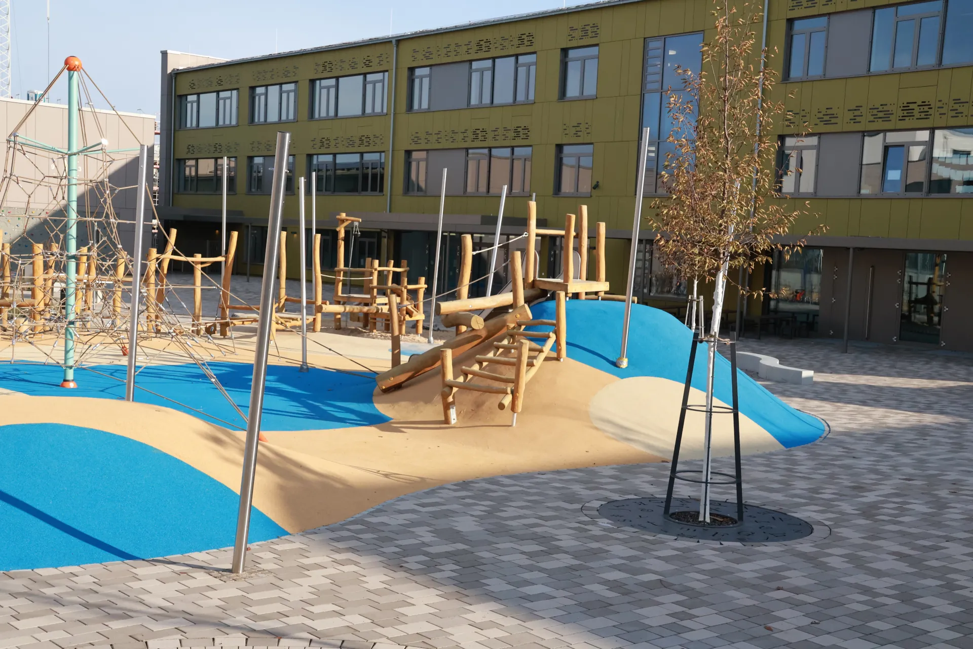 In dem neuen, barrierefreien Gebäude sind alle räumlichen Strukturen darauf ausgerichtet, Schule als Lebens- und Lernraum ganztägig zu nutzen. Ein besonderes Konzept sind unsere Differenzierungsräume: Immer zwei Klassen teilen sich einen zusätzlichen Raum, der für Kleingruppenarbeit, ruhiges Lernen oder kreative Projekte genutzt werden kann. So entsteht eine flexible Lernumgebung, die jedes Kind unterstützt.